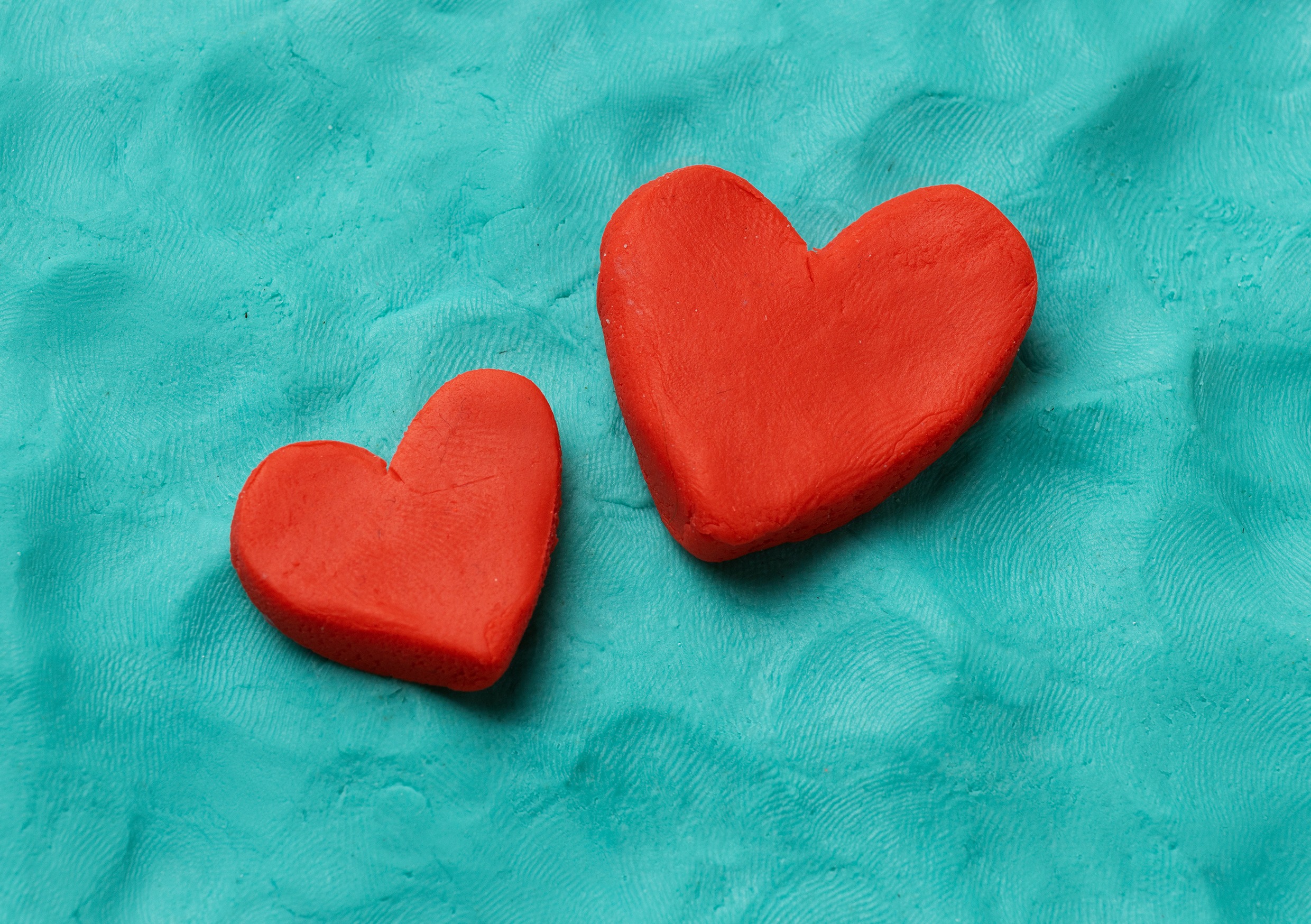 Слепленные из пластилина два малиновых сердца на бирюзовом фоне. Цвета, в которых создана эта иллюстрация, выделяют ее из множества других. Лаконично и вкусно!