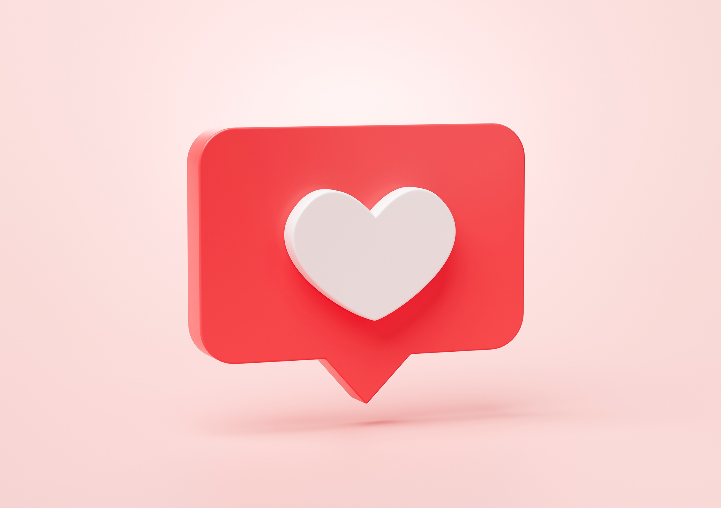 На розовом фоне, имитируя интерфейс социальной сети, показано всплывающее сообщение с сердечком.